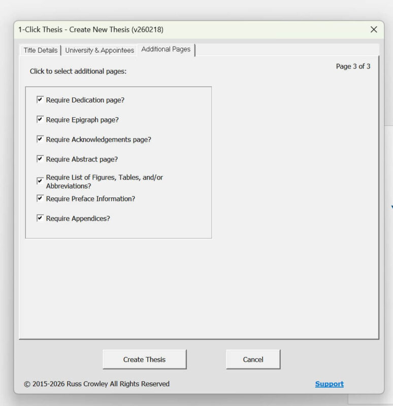 Because 1-Click Book Creation was well-received, and also because at the time I was completing my Bachelor’s degree while my wife was completing her Master’s degree, plus I was involved in editing academic theses and dissertations, I became very familiar with the thesis and dissertation instructions universities were giving to students to help them produce academic work in Microsoft Word.