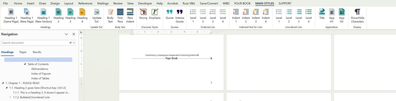 If you enable the Styles pane, you’ll see that headings are properly structured: Heading 1, Heading 2, Heading 3, and so on. In Outline View, you can quickly review the hierarchy and confirm that all formatting has been applied consistently using styles rather than manual formatting.